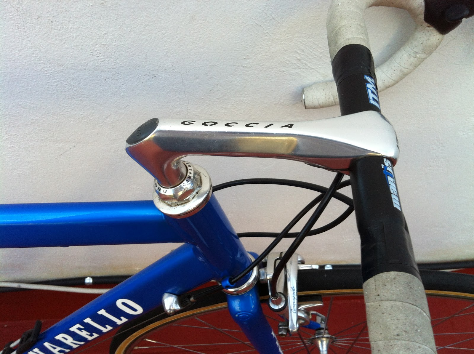 Colnago Start de alumínio com garfo de carbono e grupo Campagnolo Record de 10 velocidades.