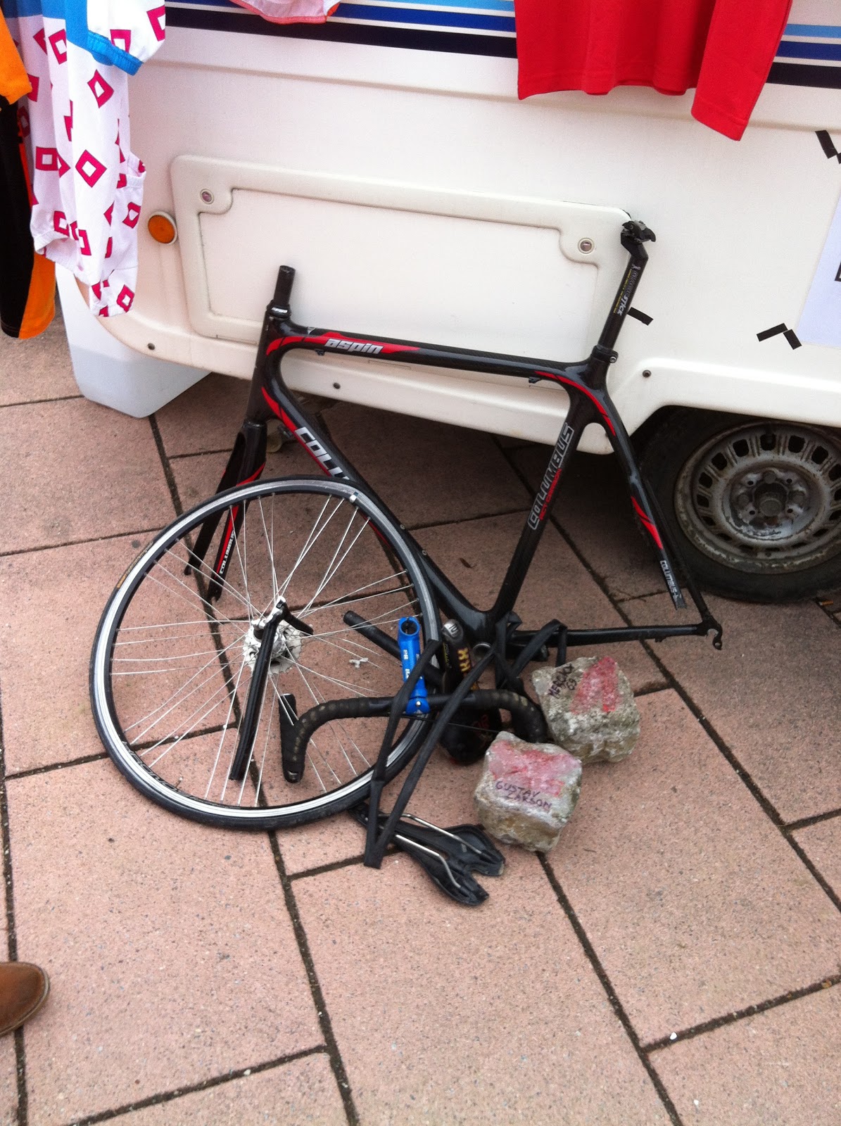 KM 20 - Furei o pneu traseiro depois do 2º muro (Maasberg - o único de paralelepípedo) com um prego enferrujado de uns 10cm que entrou no meio do pneu e saiu pela parede lateral.